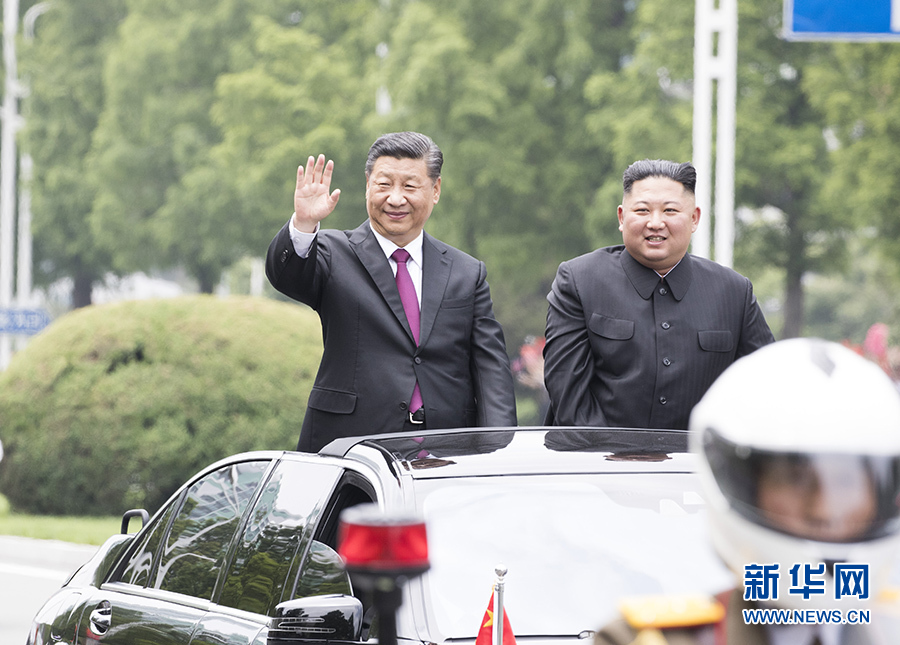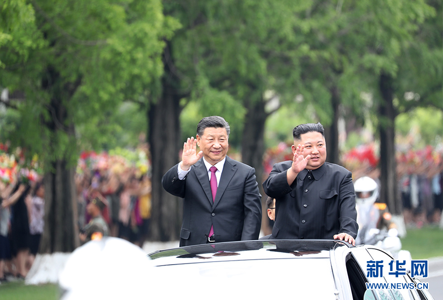 6月20日,中共中央總書記、國家主席習近平乘專機抵達平壤,開始對朝鮮民主主義人民共和國進行國事訪問。朝鮮勞動黨委員長、國務委員會委員長金正恩和夫人李雪主到機場熱情迎接習近平和夫人彭麗媛。朝方在機場舉行隆重歡迎儀式。歡迎儀式結(jié)束后,習近平與金正恩同車前往錦繡山太陽宮廣場,沿途數(shù)十萬群眾夾道歡迎。 新華社記者 申宏 攝