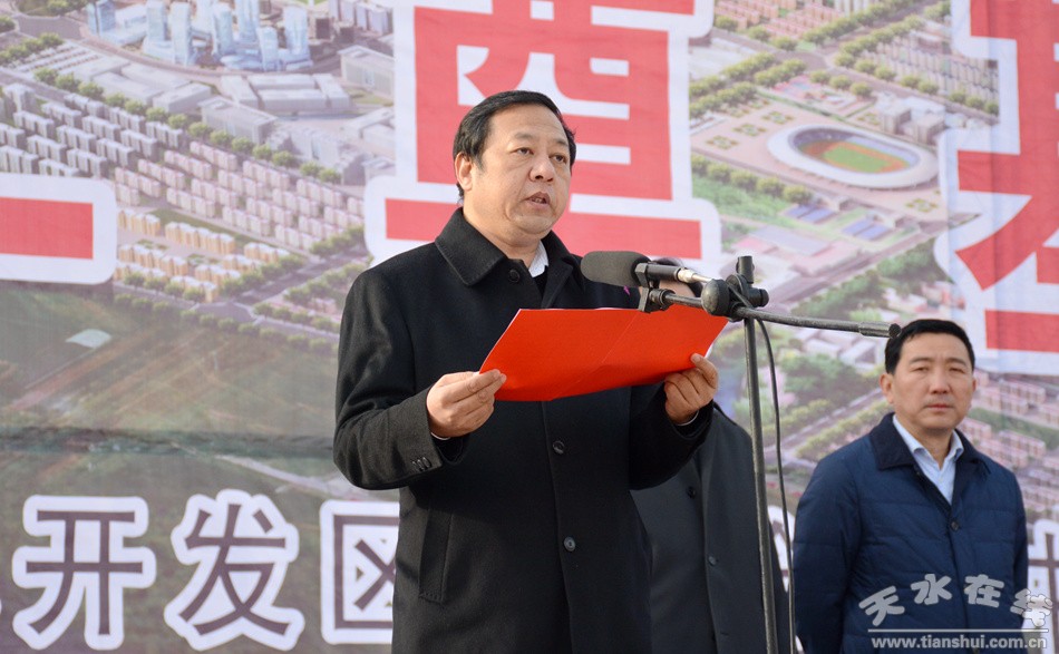 王軍代表市四大組織對(duì)天水經(jīng)濟(jì)技術(shù)開發(fā)區(qū)冀城產(chǎn)業(yè)園基礎(chǔ)設(shè)施項(xiàng)目開工建設(shè)表示熱烈祝賀。他說,建設(shè)開發(fā)區(qū)冀城產(chǎn)業(yè)園,是貫徹落實(shí)國務(wù)院《關(guān)于促進(jìn)國家級(jí)經(jīng)濟(jì)技術(shù)開發(fā)區(qū)轉(zhuǎn)型升級(jí)創(chuàng)新發(fā)展若干意見》、實(shí)現(xiàn)省委、省政府“打造千億元開發(fā)區(qū)”奮斗目標(biāo)、培育我市工業(yè)經(jīng)濟(jì)發(fā)展新的增長極的重大戰(zhàn)略舉措,對(duì)拓展開發(fā)區(qū)發(fā)展空間、優(yōu)化產(chǎn)業(yè)布局、促進(jìn)轉(zhuǎn)型升級(jí)、加快甘谷縣域經(jīng)濟(jì)發(fā)展、為甘谷群眾提供就業(yè)渠道等具有重要的戰(zhàn)略意義。開發(fā)區(qū)管委會(huì)要堅(jiān)持“產(chǎn)城融合發(fā)展”的理念,高起點(diǎn)規(guī)劃,高標(biāo)準(zhǔn)建設(shè),加快冀城產(chǎn)業(yè)園基礎(chǔ)設(shè)施建設(shè)進(jìn)度,加大招商引資力度,引進(jìn)更多更好的企業(yè)入園發(fā)展,爭(zhēng)取把冀城產(chǎn)業(yè)園建設(shè)成一流的園區(qū)。施工單位和監(jiān)理單位要精心組織、科學(xué)管理、安全施工、文明施工,高標(biāo)準(zhǔn)、高質(zhì)量完成工程建設(shè)各項(xiàng)任務(wù)。甘谷縣委、縣政府要從全市經(jīng)濟(jì)社會(huì)發(fā)展的大局出發(fā),加強(qiáng)對(duì)干部群眾的引導(dǎo)教育,加大征地拆遷和協(xié)調(diào)保障力度,全力支持產(chǎn)業(yè)園建設(shè)。市直有關(guān)單位要充分發(fā)揮職能作用,積極做好協(xié)調(diào)服務(wù),及時(shí)解決建設(shè)中遇到的各種困難和問題,為冀城產(chǎn)業(yè)園順利建設(shè)創(chuàng)造良好的外部環(huán)境。