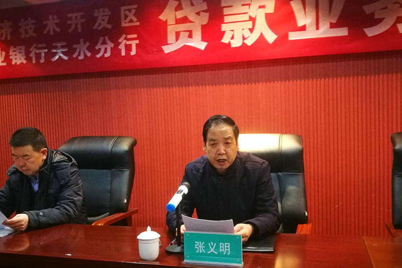 1月11日上午,天水經(jīng)濟(jì)技術(shù)開發(fā)區(qū)與市農(nóng)業(yè)銀行聯(lián)合舉行貸款業(yè)務(wù)推介會(huì)。開發(fā)區(qū)管委會(huì)副主任張義明,市農(nóng)行黨委書記、行長(zhǎng)魏志強(qiáng)出席會(huì)議并致辭。開發(fā)區(qū)有關(guān)部門負(fù)責(zé)人,開發(fā)區(qū)各企業(yè)負(fù)責(zé)人,市農(nóng)行主管領(lǐng)導(dǎo),麥積支行班子成員,麥積支行全體客戶經(jīng)理和網(wǎng)點(diǎn)負(fù)責(zé)人共計(jì)120多人參加會(huì)議。