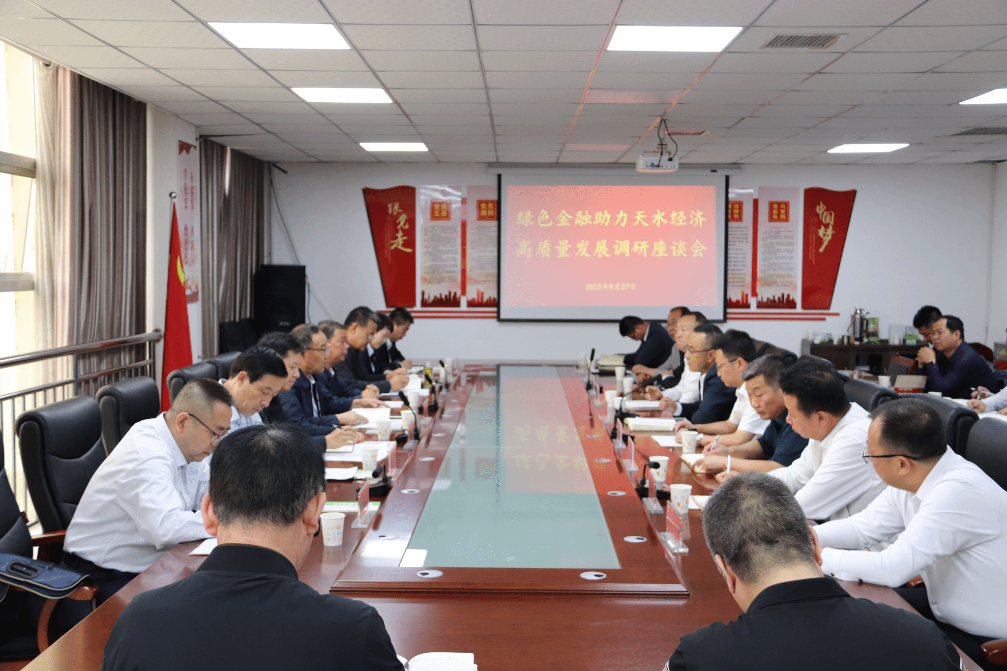 9月27日上午,中國人民銀行天水市分行黨委書記、行長周俊才等人,及蘭州銀行、交通銀行負(fù)責(zé)人就我區(qū)綠色金融發(fā)展情況進(jìn)行現(xiàn)場調(diào)研,并召開座談會。經(jīng)開區(qū)黨工委副書記、紀(jì)檢監(jiān)察工委書記于愛平,管委會副主任黨文強(qiáng)及財政局負(fù)責(zé)人等參加座談會。甘肅隴鼎建設(shè)工程(集團(tuán))有限責(zé)任公司等六家園區(qū)企業(yè)負(fù)責(zé)人參加會議。