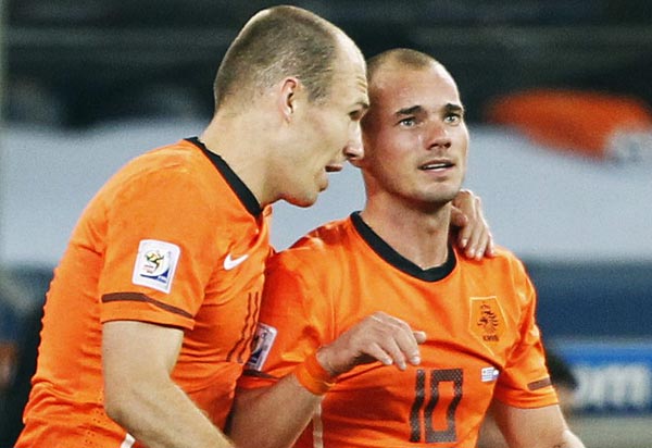荷蘭隊(4-2-3-1):1-斯特克倫伯格/12-布拉魯茲、3-海廷加、4-馬泰森、5-范布隆克霍斯特(隊長)/6-范博梅爾、14-德澤烏(46'23-范德法特)/11-羅本(89'17-埃利亞)、10-斯內(nèi)德、7-庫伊特/9-范佩西