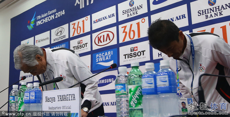 仁川當(dāng)?shù)貢r(shí)間9月27日上午,原定在主新聞中心召開(kāi)的日本代表團(tuán)發(fā)布會(huì),由于先前發(fā)生了游泳運(yùn)動(dòng)員富田尚彌偷相機(jī)一事變得備受關(guān)注,日本代表團(tuán)團(tuán)長(zhǎng)青木剛和官員Naoya Yanagiya出席了新聞發(fā)布會(huì),在會(huì)議開(kāi)始之前,兩人站立鞠躬向臺(tái)下的日本記者們致歉,時(shí)長(zhǎng)超過(guò)1分鐘,Naoya Yanagiya表示“偷竊行為令日本代表團(tuán)蒙羞”,并且他宣布富田尚彌已經(jīng)被日本代表團(tuán)除名。