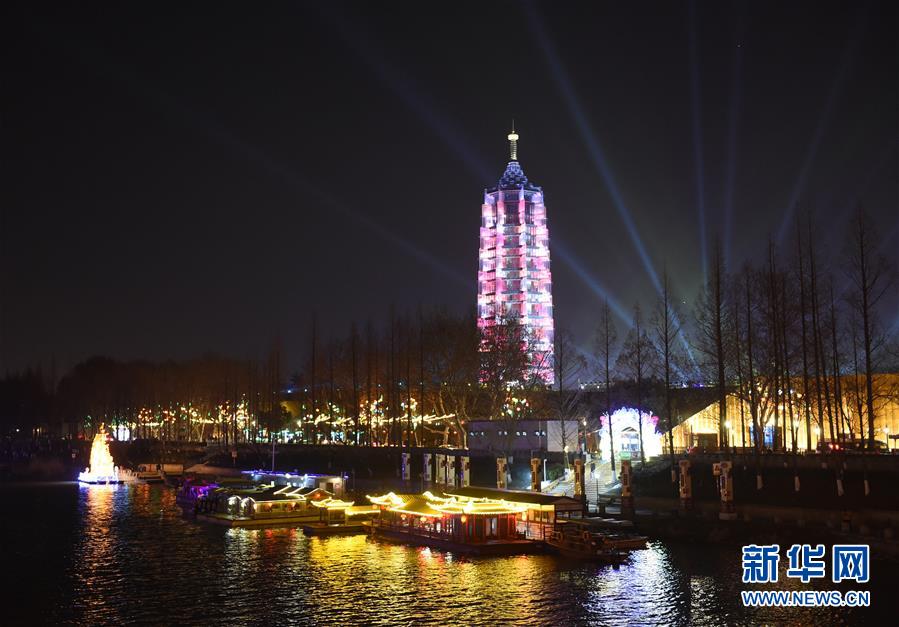 這是2月11日在南京大報(bào)恩寺遺址公園附近拍攝的燈景。