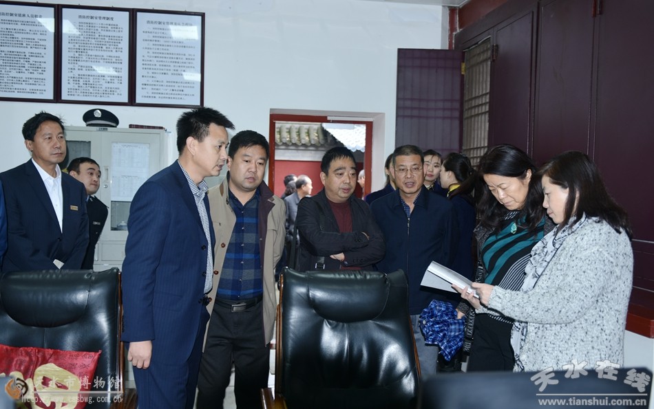 10月24日,由甘肅省文物局博物館與社會文物處處長趙劍飛,省財政廳科技文化處調(diào)研員劉玉珍,省文物局張瑞軍、郭鵬組成的甘肅省博物館免費開放考核小組在天水市文物局局長王國慶的陪同下,對天水市博物館、天水民俗博物館2015年度免費開放工作進行了考核。市博物館副館長劉玉璞、管玉、汪保全陪同考核。