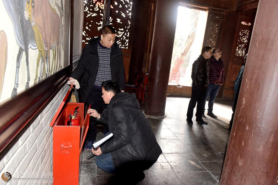 1月28日上午,天水市博物館副館長高世華帶領(lǐng)辦公室、保衛(wèi)科和古建園林部相關(guān)負責人員組成檢查組,對伏羲廟、歷史文物陳列館等進行安全大檢查。檢查主要包括三個方面:一是各部室和各崗位履行安全責任情況;二是安防、消防設(shè)施、設(shè)備和器材的運行情況;三是文物庫房、展廳、古建筑等重點要害部位,以及辦公場所、職工食堂的安全衛(wèi)生情況。
