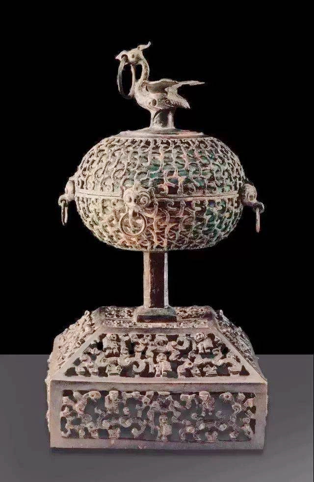 1997年陜西鳳翔雍城遺址出土了一件戰(zhàn)國(guó)鳳鳥(niǎo)銜環(huán)銅熏爐,爐體分內(nèi)外兩層,外層為鏤空的蟠螭紋外罩,底座也為鏤空紋飾,可以代表當(dāng)時(shí)銅熏爐的最高水平。
