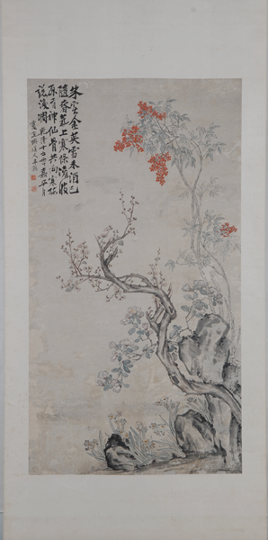 紙本設色。左側(cè)題:“玉照春暉”,落款:“純子三兄先生清賞,邗上鐵研道人羅允紹”,下鈐“允紹”朱文印、“介人”白文印,右下角鈐“雪海流香”朱文印。