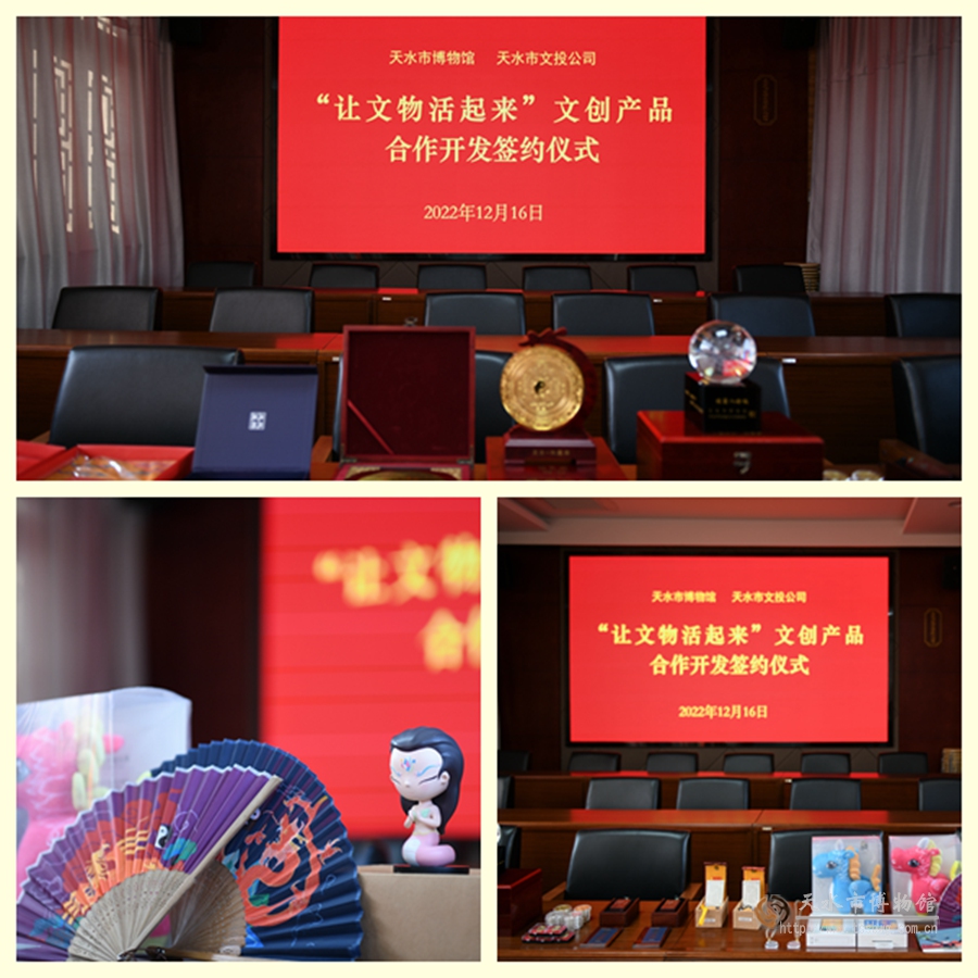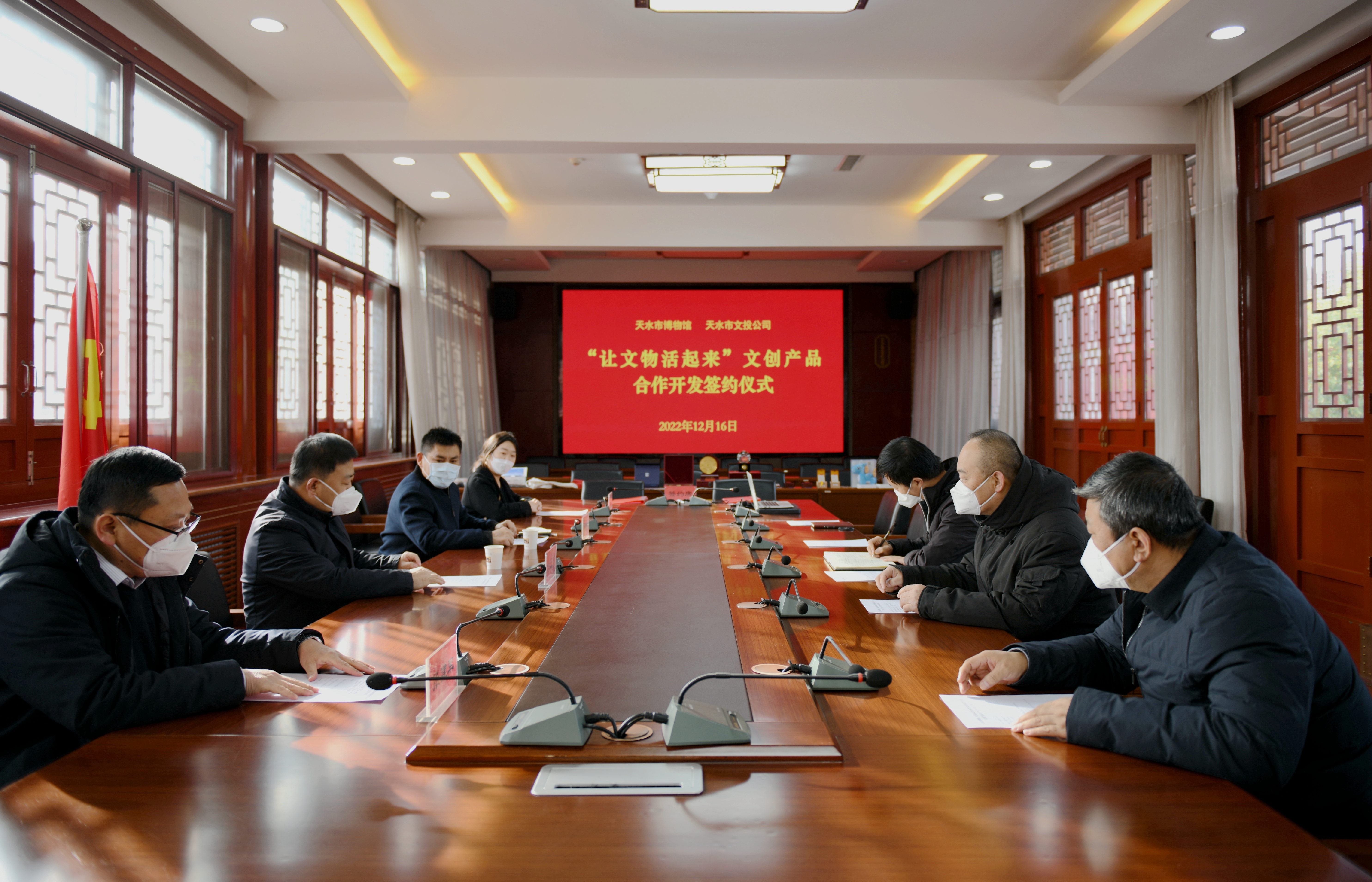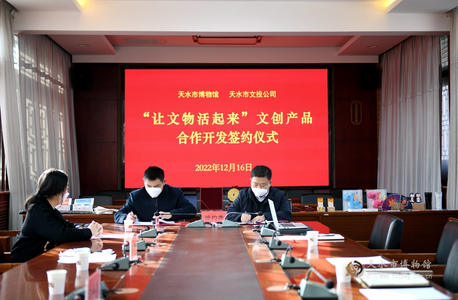 12月16日下午,天水市博物館與市文投公司在暢和軒舉行“讓文物活起來”文創(chuàng)產(chǎn)品合作開發(fā)簽約儀式,天水市博物館黨總支書記、館長劉玉璞,市文投公司黨支部副書記、總經(jīng)理景延峰,市博物館副館長張建軍等參加儀式。
