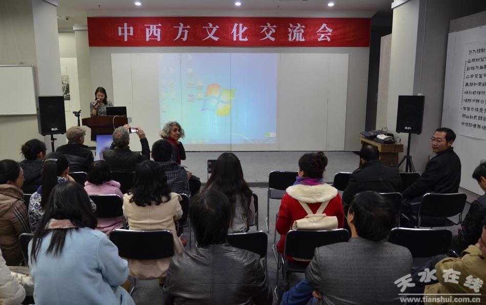 11月17日晚,由天水市文化館主辦,天水樂學堂和天水華夏藝術館承辦的中外文化交流活動在天水市文聯(lián)創(chuàng)作交流中心舉辦,天水學者與來自瑞士的藝術家Gary stem夫婦進行了文化交流。