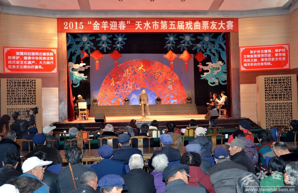 為進一步傳承優(yōu)秀傳統(tǒng)文化,傳承弘揚秦腔文化,挖掘培養(yǎng)戲曲人才,豐富全市人民文化生活,由天水市委宣傳部、天水市文化和旅游局主辦,由天水市文化館承辦的2015“金羊迎春 ”天水市第五屆戲曲票友大賽2月25日下午在市文化館拉開比賽序幕。本次大賽吸引了我市大批秦腔戲曲愛好者前來聽戲,賞戲,給節(jié)日的天水增添了祥和喜慶的氣氛。