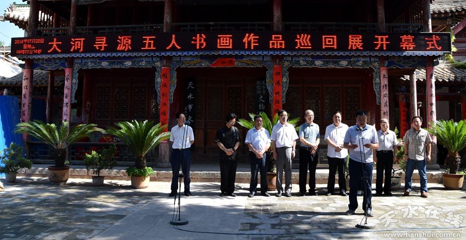 7月20日,由中共天水市委宣傳部、天水市文化和旅游局主辦,天水市文化館、西安市詩書畫藝術(shù)研究會、天水華文傳媒有限公司承辦,天水師范學(xué)院美術(shù)學(xué)院、天水市書法家協(xié)會、天水市美術(shù)家協(xié)會協(xié)辦的“大河尋源”五人書畫作品巡回展在天水市文化館開展。