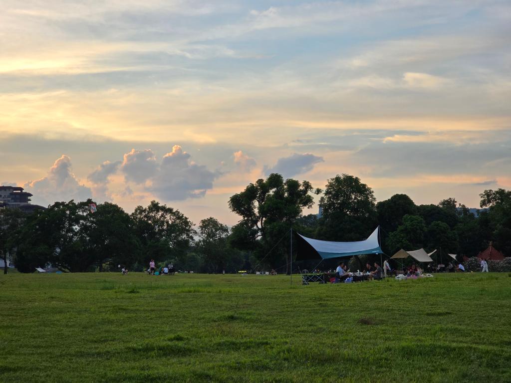 市民在南寧市濱江公園露營。新華社記者 農(nóng)冠斌 攝