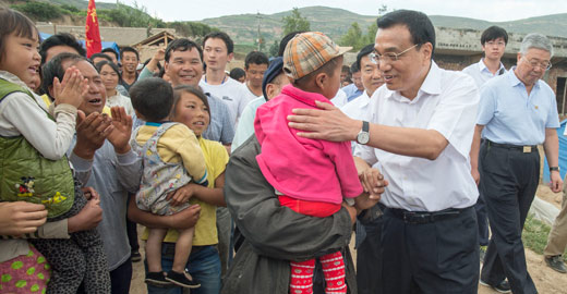 8月17日,中共中央政治局常委、國務(wù)院總理李克強(qiáng)來到甘肅岷縣漳縣地震災(zāi)區(qū)考察。這是李克強(qiáng)總理來到海拔2700多米的岷縣重災(zāi)區(qū)梅川鎮(zhèn)永光村看望受災(zāi)群眾。 新華社記者李學(xué)仁攝