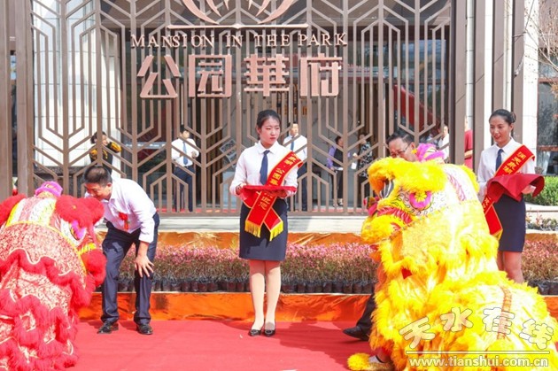 致辭結(jié)束后,天水潤(rùn)天泉湖置業(yè)有限公司總經(jīng)理李海龍及副總王繼福為醒獅點(diǎn)睛,寓意萬(wàn)事如意、再創(chuàng)輝煌,也預(yù)示著潤(rùn)天泉湖·公園華府更加美好的明天。