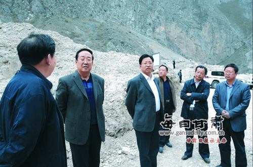 何振中廳長、成榮生副廳長在舟曲縣查看災(zāi)情。