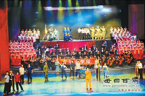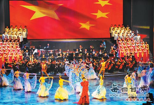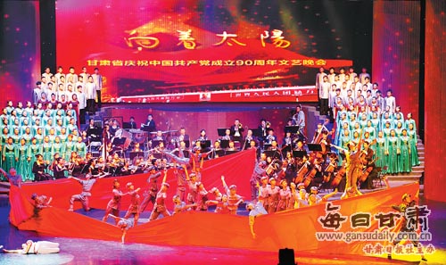 6月30日晚,“向著太陽”——甘肅省慶祝中國共產(chǎn)黨成立90周年文藝晚會在新落成的甘肅大劇院舉行。精彩紛呈的歌舞勾勒出中國共產(chǎn)黨的輝煌歷史,熱烈沸騰的掌聲傳達(dá)出觀眾共同的心聲。