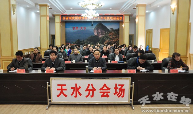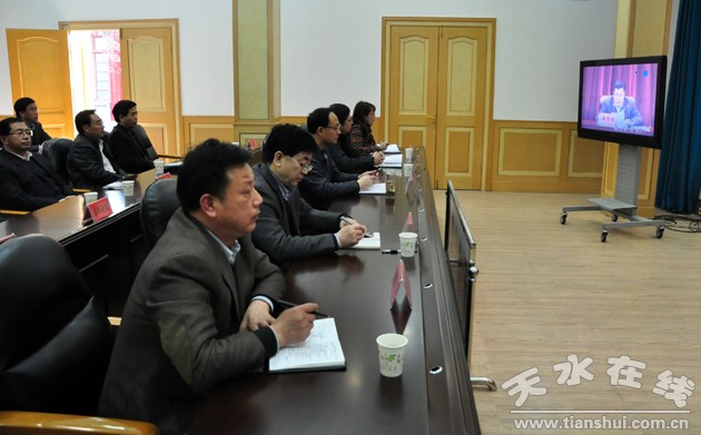 (天水市政府副市長王鈞在天水分會場參加會議)