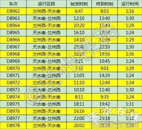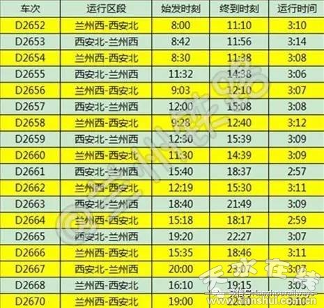 此次列車(chē)運(yùn)行時(shí)刻顯示,蘭州西至西安北間共運(yùn)行動(dòng)車(chē)組列車(chē)33趟,平均間隔25分鐘1趟。西安北至蘭州西間共運(yùn)行動(dòng)車(chē)組列車(chē)33趟,平均間隔22分鐘1趟。蘭州西站至天水南站間共運(yùn)行動(dòng)車(chē)組列車(chē)42趟,平均間隔19分鐘1趟。天水南站至蘭州西站間共運(yùn)行動(dòng)車(chē)組列車(chē)41趟,平均間隔21分鐘1趟。
