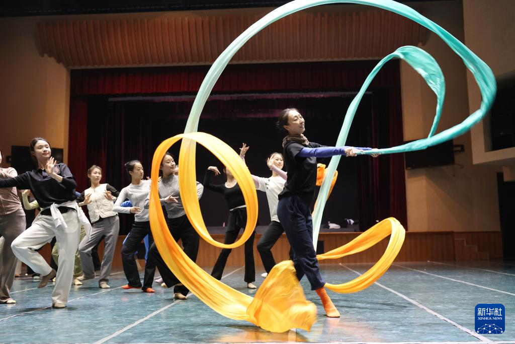 甘肅省歌舞劇院舞蹈演員在劇院排練廳排練新版《絲路花雨》(11月3日攝)。