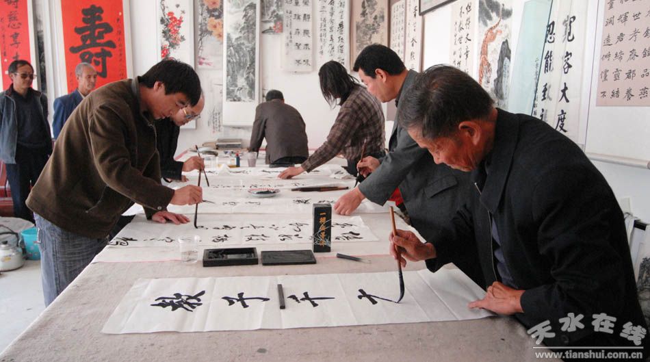大石村只是甘谷縣書畫之村的代表之一,進(jìn)年來,甘谷縣把發(fā)展文化節(jié)產(chǎn)業(yè)作為滿足人民多樣化精神文化需求的主要途徑,千方百計支持文化產(chǎn)業(yè)發(fā)展,一大批得改革開放風(fēng)氣之先的時代弄潮兒,開畫廊辦書店,內(nèi)引外聯(lián)多方交流,有效促進(jìn)了文化產(chǎn)業(yè)的繁榮和發(fā)展。據(jù)了解,全縣目前有書畫裝裱店88家,從業(yè)人員120多人,年書畫產(chǎn)值交易1000余萬元。書畫店除裝裱書畫作品外,經(jīng)常邀請北京、上海等地知名書畫家來甘谷“文化塔臺,經(jīng)濟(jì)唱戲”,每年邀請書畫家達(dá)100多人。頻繁的交流,有效促進(jìn)了本地書法作品水平的整體提高,目前本地進(jìn)行書畫創(chuàng)作的隊伍達(dá)150人之多。與文化產(chǎn)業(yè)有關(guān)的還有麻編鞋業(yè),甘谷麻鞋歷史悠久,麻鞋小作坊遍布城鄉(xiāng),甘谷縣大漠行麻編鞋業(yè)有限公司采用農(nóng)戶+公司等生產(chǎn)方式,帶動城鄉(xiāng)一千余人就業(yè),年生產(chǎn)麻鞋80萬雙,年產(chǎn)值230多萬元,年出口創(chuàng)匯300萬美元,成為甘谷文化產(chǎn)品的一張名片。