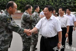 慰問中,市軍分區(qū)司令員李建中對甘谷縣黨政領(lǐng)導(dǎo)的到來表示熱烈的歡迎和衷心的感謝,并對近年來甘谷縣在經(jīng)濟(jì)社會發(fā)展中取得的各項成就表示祝賀,對甘谷縣人民武裝工作取得的成績給予充分肯定,同時表示今后將繼續(xù)與甘谷加強(qiáng)聯(lián)系,積極支持和參與地方建設(shè),進(jìn)一步開創(chuàng)軍民共建的良好局面。