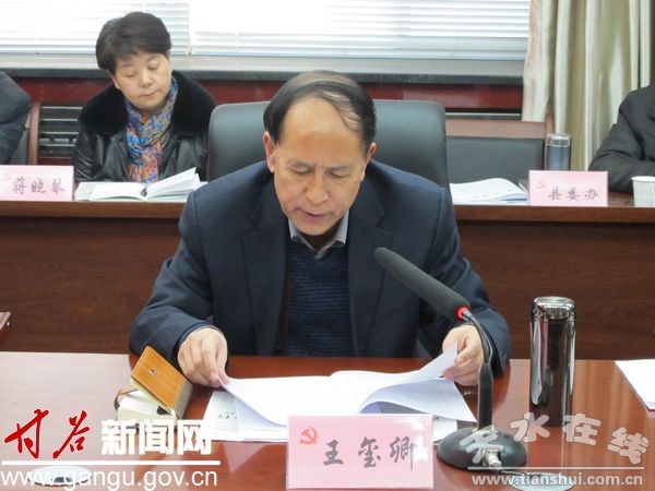 12月31日,甘谷縣委書記賈忠慧主持召開(kāi)縣委中心組學(xué)習(xí)會(huì)議。會(huì)議傳達(dá)學(xué)習(xí)了中央經(jīng)濟(jì)工作會(huì)議精神、中央農(nóng)村工作會(huì)議精神、王岐山同志在中央紀(jì)委監(jiān)察部機(jī)關(guān)全體黨員干部會(huì)上的重要講話精神、天水市政府工作報(bào)告文件精神、天水市政協(xié)會(huì)議精神。