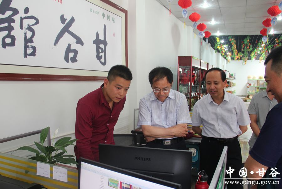 7月2日,甘肅省商務廳副廳長肖立群一行檢查指導甘谷電子商務工作,天水市商務局局長李尚平,甘谷縣委書記賈忠慧、副縣長齊銀川及縣商務局負責人陪同檢查。