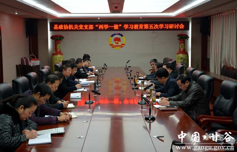 11月30日,甘谷縣政協(xié)機(jī)關(guān)黨支部召開“兩學(xué)一做”學(xué)習(xí)教育第五次學(xué)習(xí)研討會議。縣政協(xié)主席馬驥,縣政協(xié)副主席陳旭、董成斌、鄭建子、馬清平出席會議;縣政協(xié)機(jī)關(guān)黨支部全體黨員干部參加會議。