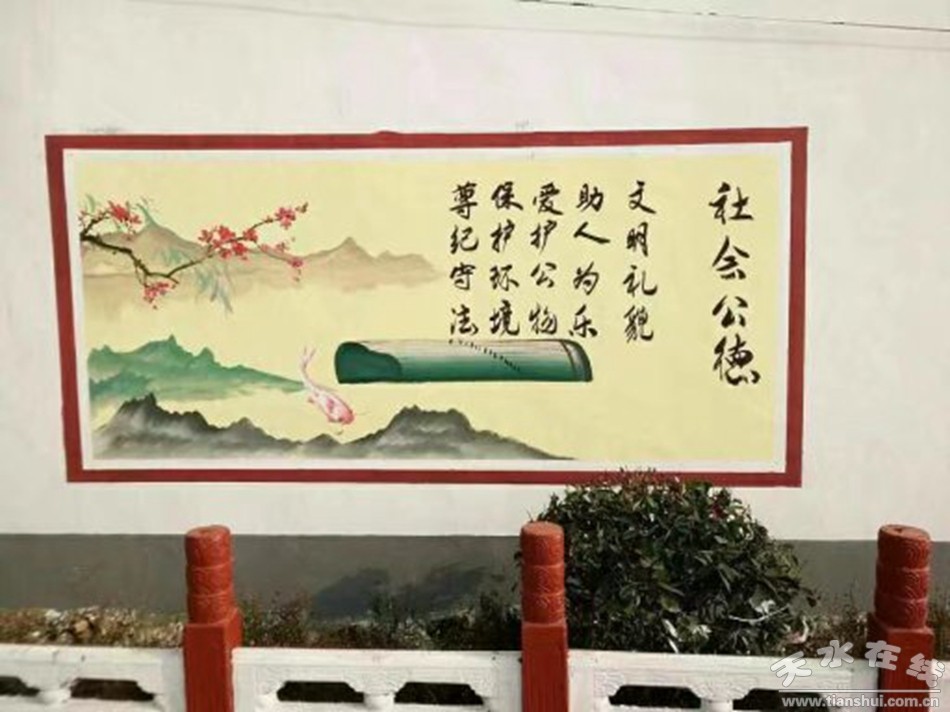 三 、整治沿街房屋墻面,統(tǒng)一商鋪門頭牌匾。按照體統(tǒng)一規(guī)劃、統(tǒng)一標準、基本一致的要求,對破墻殘壁全部拆除,新砌和刷白沿線圍墻。在部分路段繪制二十四孝圖、社會主義核心價值觀以及弘揚中華民族傳統(tǒng)文化的墻面彩繪,豐富了景觀層次、提升了文化品位、改善了沿線街景。對楊趙村、史家村、樊家村等村莊的沿街商鋪的破舊門頭牌匾和廣告牌全部拆除。統(tǒng)一風(fēng)格,規(guī)范安裝,達到整齊劃一、美觀大方、樸素簡潔的效果。