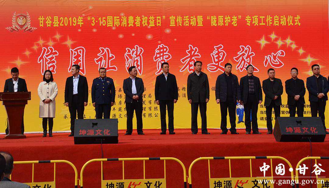 3月14日,中共甘谷縣委宣傳部、縣文明辦、縣市場(chǎng)監(jiān)督管理局、縣消費(fèi)者協(xié)會(huì)等50多家部門、單位、企業(yè)及廣大的經(jīng)營(yíng)者、消費(fèi)者共計(jì)600余人在甘谷縣大什字廣場(chǎng)隆重集會(huì),紀(jì)念宣傳第37個(gè)“國(guó)際消費(fèi)者權(quán)益日”,縣委常委、宣傳部長(zhǎng)張慶元、縣人大常委會(huì)副主任劉永仁、縣政府副縣長(zhǎng)李萍、縣政協(xié)副主席田小龍出席活動(dòng)。