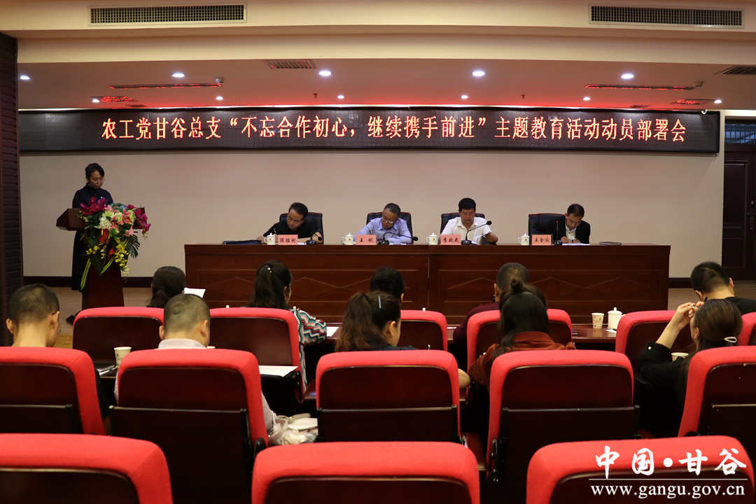 9月6日,農(nóng)工黨甘谷總支開(kāi)展“不忘合作初心、繼續(xù)攜手前進(jìn)”主題教育活動(dòng)動(dòng)員部署會(huì),縣委常委、統(tǒng)戰(zhàn)部部長(zhǎng)王剛出席會(huì)議并講話(huà)。