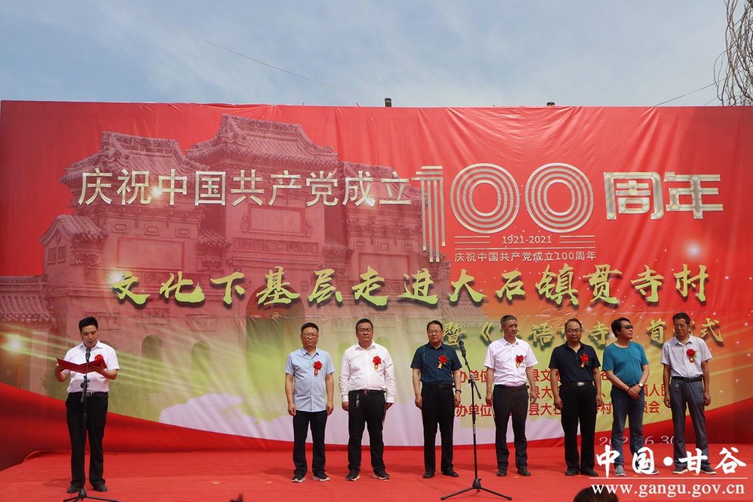 6月30日,甘谷縣慶祝中國共產(chǎn)黨成立100周年文化下基層文藝演出慰問活動在大石鎮(zhèn)貫寺村舉行?h人大常委會副主任王新民,縣政協(xié)副主席馬清平,縣文旅局、縣科技局、縣文聯(lián)、縣美術(shù)家協(xié)會、縣作家協(xié)會、縣科協(xié)、大石鎮(zhèn)等單位相關(guān)負責(zé)人參加活動。