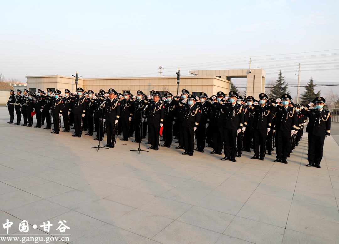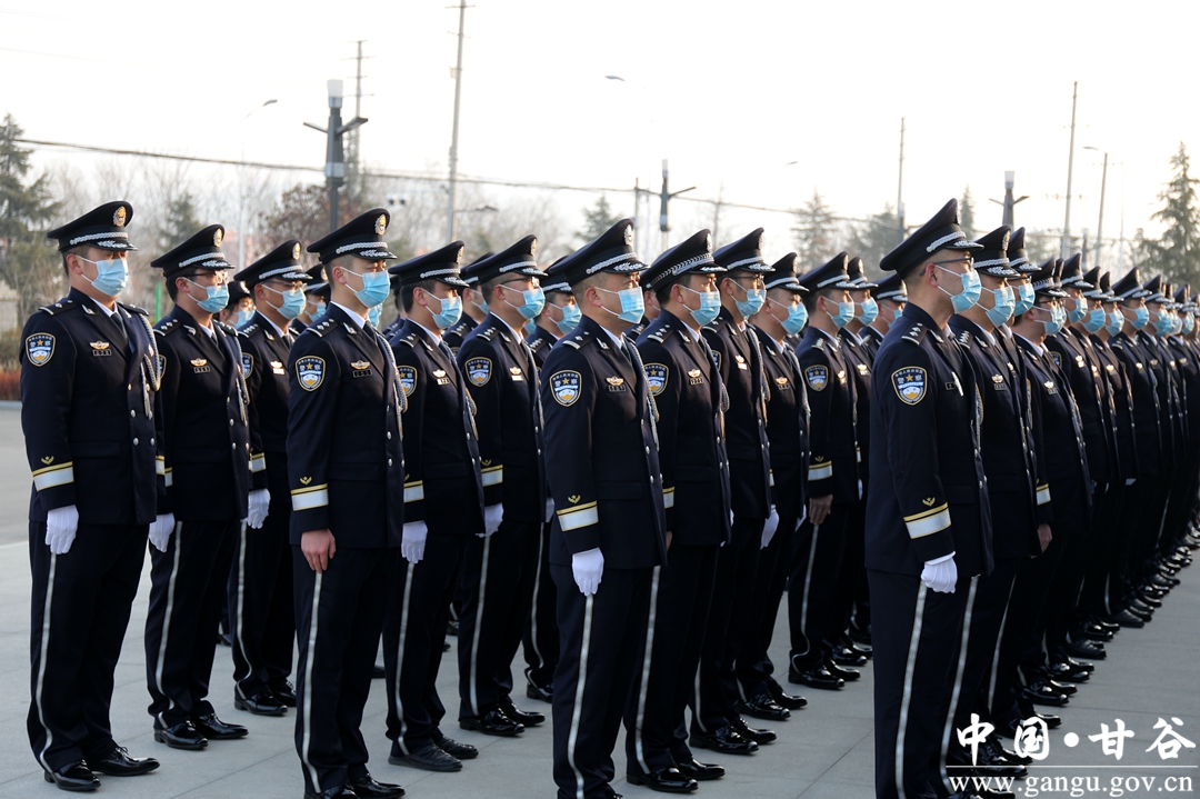 “我宣誓:堅(jiān)決擁護(hù)中國共產(chǎn)黨的絕對(duì)領(lǐng)導(dǎo),矢志獻(xiàn)身崇高的人民公安事業(yè),對(duì)黨忠誠、服務(wù)人民、執(zhí)法公正、紀(jì)律嚴(yán)明……”1月10日,甘谷縣公安局隆重舉行升警旗暨警禮服列裝儀式慶祝中國人民警察節(jié)。副縣長、縣公安局黨委書記、局長張濤出席儀式并致辭,在家局領(lǐng)導(dǎo)、各所隊(duì)室全體民警共計(jì)260余人參加儀式。