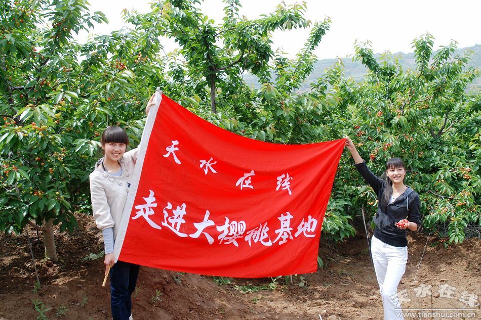 ▲2012年5月20日上午,天水在線策劃舉行秦州區(qū)玉泉鎮(zhèn)煙鋪村大櫻桃采摘儀式。