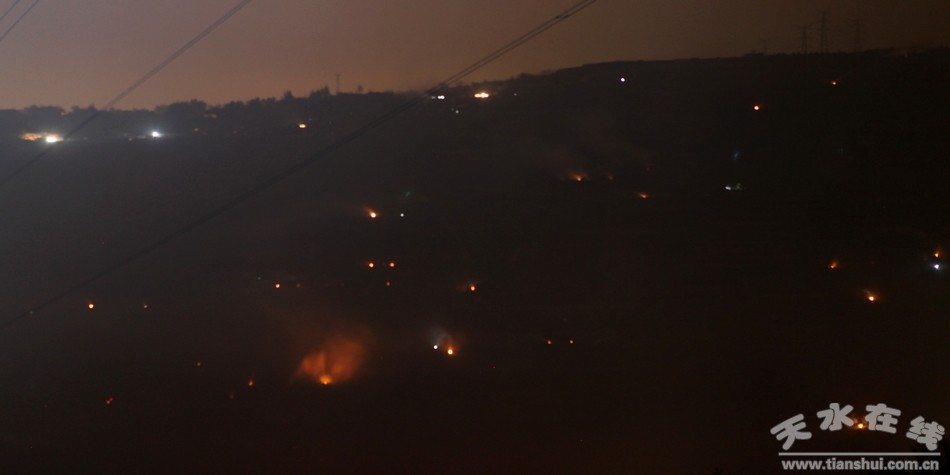 ▲2014年4月25夜,秦州區(qū)玉泉鎮(zhèn)煙鋪大櫻桃基地,果農(nóng)采用煙熏防霜。