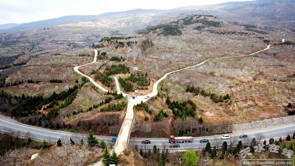 ▲2013年3月30日(周六),天水市秦州區(qū)玉泉鎮(zhèn)煙鋪村萬畝櫻桃園櫻桃花開正盛,天水在線來到煙鋪村萬畝櫻桃園,賞花、觀光、采風(fēng)。