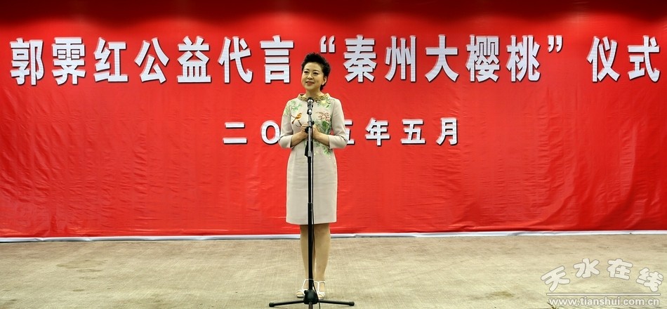 ▲2015年5月24日下午,經(jīng)天水在線牽線搭橋,秦州區(qū)人民政府聘請中央電視臺《中華情》總導(dǎo)演郭霽紅公益代言“秦州大櫻桃”儀式在天水迎賓館隆重舉行。天水市委副書記、市長楊維俊,市委常委、秦州區(qū)委書記雷鳴,副市長霍衛(wèi)平等出席儀式。秦州區(qū)人民政府區(qū)長何東主持公益代言儀式。