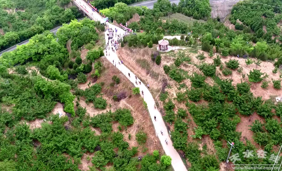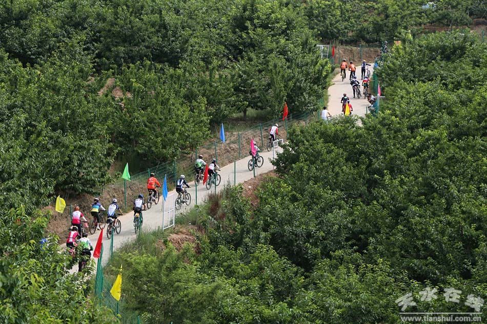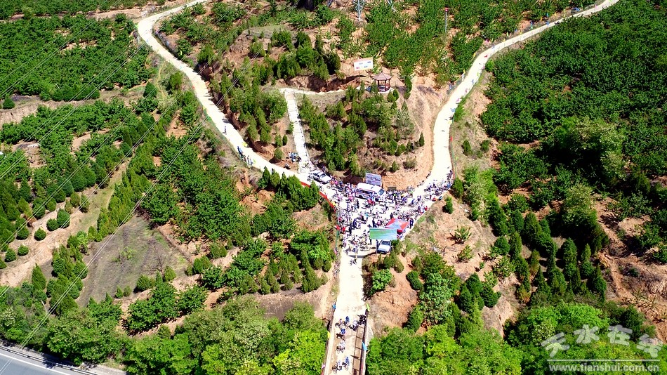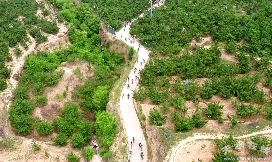 ▲2017年5月20日,第四屆“環(huán)煙鋪櫻桃園”山地自行車賽。天水在線航拍。