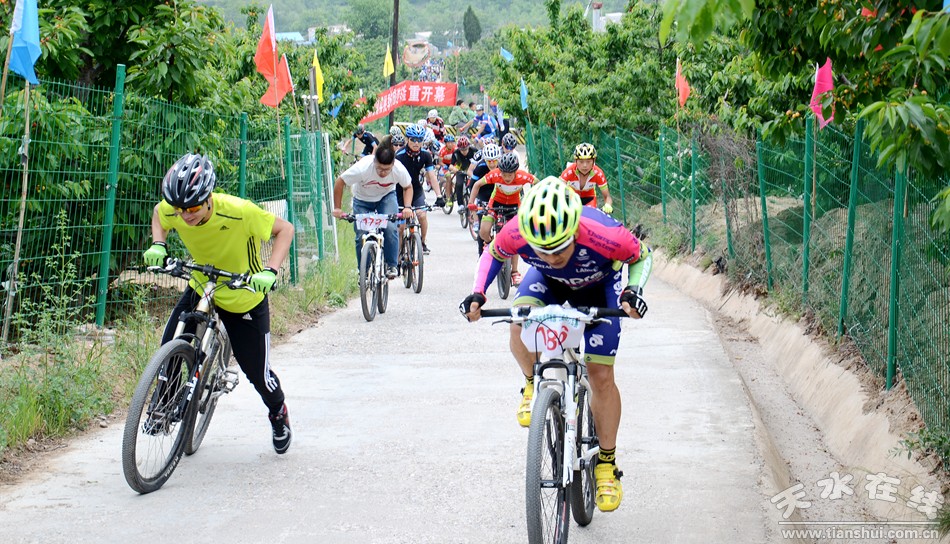 ▲“ 啪!”,2014年7月5日上午9時整,隨著一聲清脆的發(fā)號槍聲在秦州區(qū)煙鋪大櫻桃基地交易巿場上空響起,由天水巿體育局主辦,天水巿體育總會、天水在線共同承辦的天水巿喜迎第十三屆環(huán)青海湖國際自行車賽“環(huán)煙鋪櫻桃園山地自行車騎行活動”正式拉開了序幕。同日上午,第十三屆環(huán)青海湖國際公路自行車賽開幕式在青海省西寧市隆重舉行。