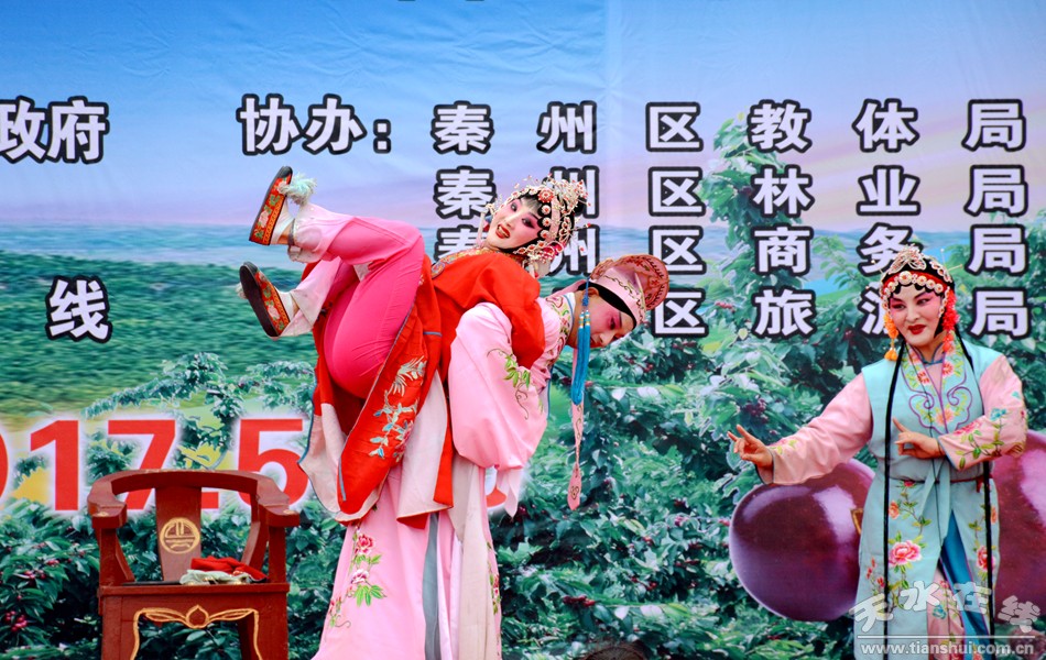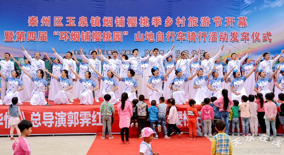 ▲2017年5月20日,秦州區(qū)玉泉鎮(zhèn)煙鋪櫻桃季鄉(xiāng)村旅游節(jié)開幕式暨第四屆“環(huán)煙鋪櫻桃園”山地自行車賽,在秦州區(qū)玉泉鎮(zhèn)煙鋪村舉行。圖為文藝演出。