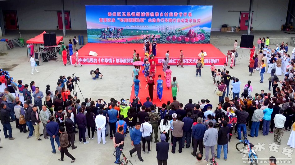 ▲2017年5月20日,在這個櫻果飄香的季節(jié),在這個“我愛您”的日子里,秦州區(qū)玉泉鎮(zhèn)煙鋪櫻桃季鄉(xiāng)村旅游節(jié)開幕式暨第四屆“環(huán)煙鋪櫻桃園”山地自行車騎行活動,在秦州區(qū)玉泉鎮(zhèn)煙鋪村隆重舉行。秦州區(qū)委常委、宣傳部長曹亞玲,區(qū)委常委、玉泉鎮(zhèn)黨委書記安敏峰及秦州區(qū)相關(guān)部門負責(zé)人出席儀式。本次活動由秦州區(qū)玉泉鎮(zhèn)人民政府和天水在線聯(lián)合主辦,秦州區(qū)教體局、林業(yè)局、商務(wù)局、旅游局、藍天救援隊協(xié)辦。
