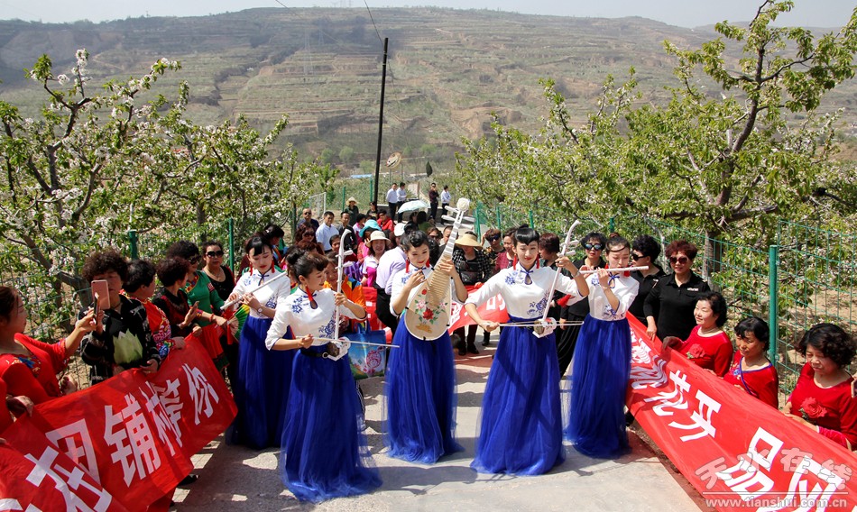 ▲2018年4月3日,天水白娃娃在煙鋪櫻桃園上演“國樂花香”“快閃”。 |