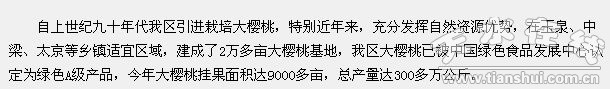 天水在線2018年12月8日報道 天水市秦州區(qū)玉泉鎮(zhèn)煙鋪村是一個現(xiàn)有176戶800余口人的古老村落,這里屬典型的半濕潤半干旱溫帶氣候,四季雨量適中,日照充沛,土層深厚,是種植大櫻桃的最佳生長區(qū)域,自實施退耕還林以來,大櫻桃種植成了該村唯一的支柱產(chǎn)業(yè)和收入來源。