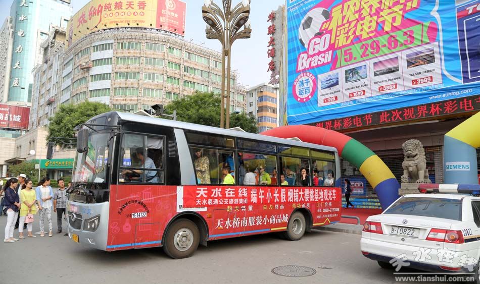 ▲2014年5月31日(星期六)至6月2日(星期一),“端午節(jié)”小長假,為滿足到秦州區(qū)煙鋪大櫻桃基地觀光旅游,采摘櫻桃,購買正宗煙鋪大櫻桃的需求,經(jīng)天水在線提議,天水市運管局批準,天水市交警支隊秦州城區(qū)大隊和郊區(qū)大隊支持,天水羲通公交旅游集團開通“煙鋪大櫻桃基地觀光號”臨時公交車,始發(fā)站設(shè)在市中心廣場華聯(lián)商廈(原華西大廈)門前,終點設(shè)在煙鋪大櫻桃市場,票價一元,運行時間為10-15分鐘,車程為三公里,發(fā)車時間為每天上午的9時、10時、11時和下午的14時、15時、16時、17時。
