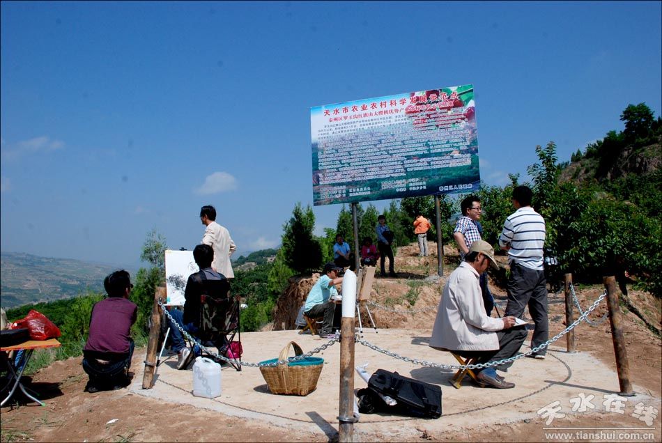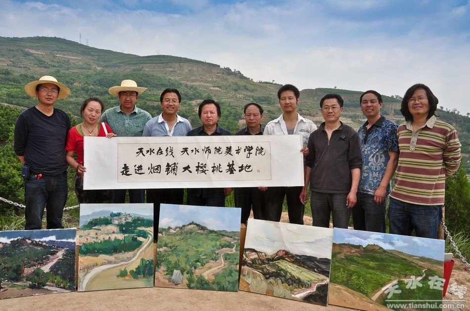 ▲2012年5月27日(周日),天水在線聯(lián)合天水師范學(xué)院美術(shù)學(xué)院走進秦州區(qū)玉泉鎮(zhèn)煙鋪村大櫻桃基地采風(fēng)。