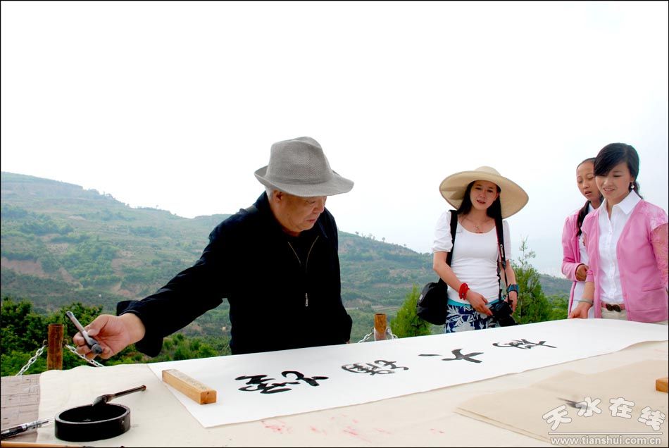 ▲2012年6月2日(周六),天水在線邀請萬惠民(中國書法家協(xié)會會員、原甘肅書法家協(xié)會副主席、原天水書畫院院長),陳懷曦(中國書法家協(xié)會會員,天水市著名書法家,書法教育家),張 平(中國書法家協(xié)會會員、天水市著名書法家、天水市書協(xié)副主席)走進煙鋪櫻桃園揮毫潑墨,書寫“煙鋪大櫻桃”,用書法藝術(shù)開展“為民富民”行動。
