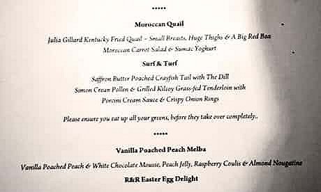 自由黨集資晚宴菜單。圖片來源:網(wǎng)絡