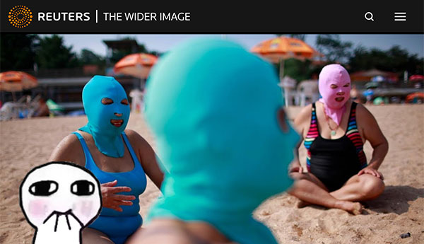 到了2012年,“臉基尼”就開(kāi)始在國(guó)外大火。而這一切要感謝“助攻”路透社。那年的7月6日,路透社發(fā)布了一組青島女(da)士(ma)戴著面罩在沙灘上休息的照片,引發(fā)海外網(wǎng)友關(guān)注。