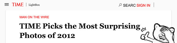 這張封面照片同時(shí)也被美國(guó)《時(shí)代周刊》選為“2012年度最令人吃驚照片”之一。