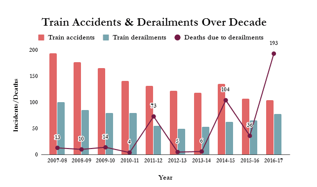 根據(jù)印度人民院2016年12月14日的《鐵路安全保障》報告,脫軌是2003年到2016年印度鐵路造成事故的第二大原因。第一大原因是人為疏失。